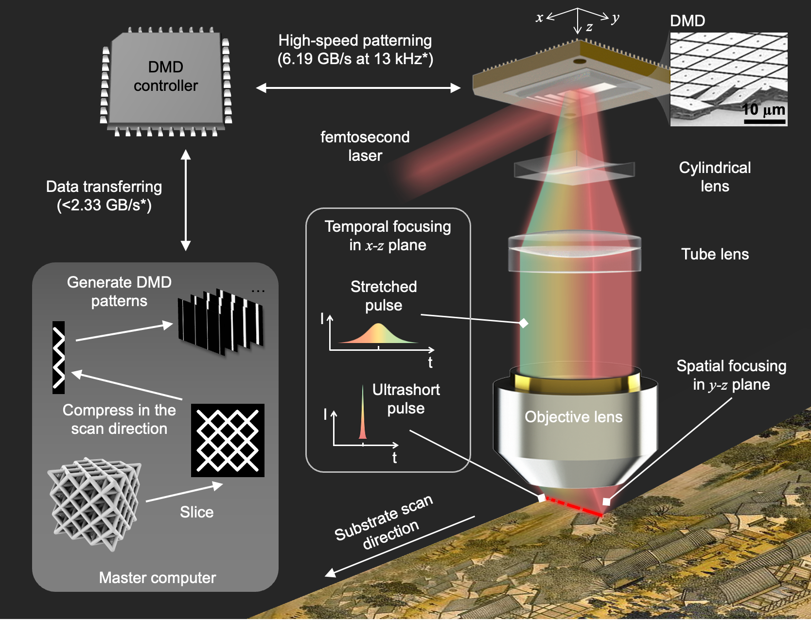 LINESCAN 100i是一款颠覆性的3D纳米制造平台,能够以超高速率和纳米级精度建构任意复杂的三维结构。其核心技术透过飞秒激光器与数字微镜的空间与时间聚焦,实现了并行化的超快加工。